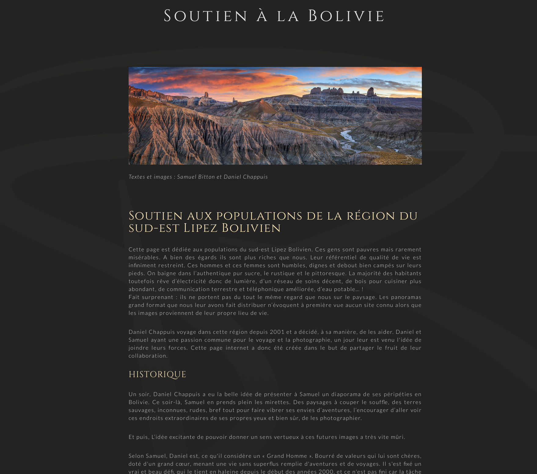 Nouvelle page Soutien à la Bolivie sur mon site internet entièrement consacrée à la noble action d'un ami cher, Daniel Chappuis, visant à aider les populations du Sud-Est Lipez.