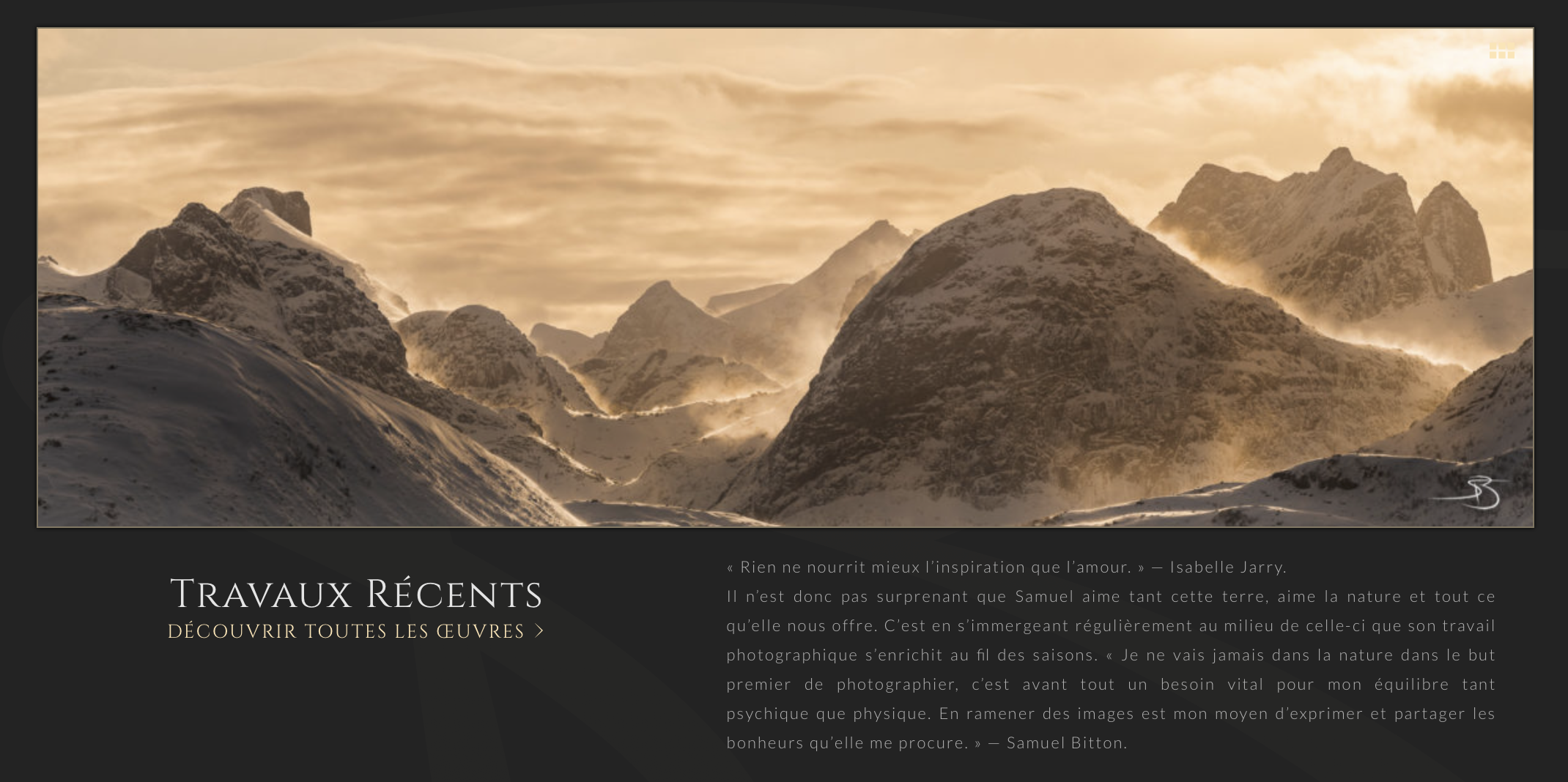Travaux Récents, dans laquelle vous pourrez découvrir mes toutes dernières photographies ainsi que les celles récemment ajoutées dans les diverses galeries.