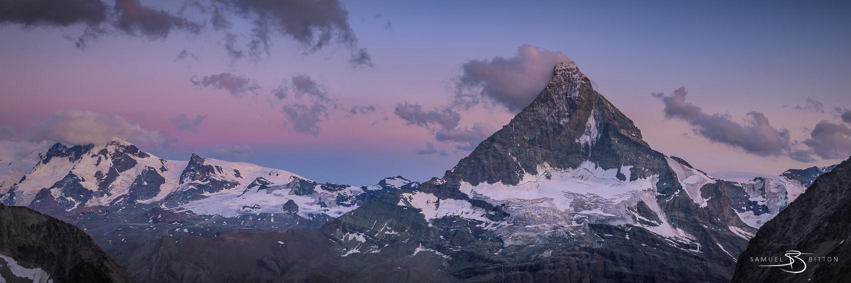 Crépuscule sur le Cervin depuis l'Arbenbiwak.