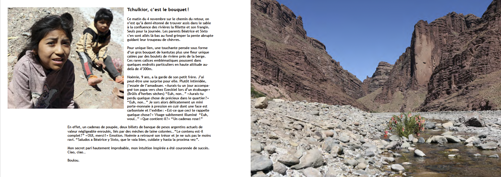 Mais une colossale surprise : un quidam suisse journaliste libre et curieux, par hasard débarque d’un camion parti d’Uyuni à San Antonio de Lipez. Le maire Angel Guttierez d’emblée évoque cet autre helvète qui hante depuis des lustres la région l’explorant assidûment. Intrigué, J.-Claude tel un chien-truffier suit ma piste. De nombreux habitants lui parlent de moi, en bien ! Jean-Claude Vignoli via internet sur ce site précisément trouve mes coordonnées et me contacte. Nous convenons de la rédaction d’un article qui paraîtra en 2021 dans l’ECHO.